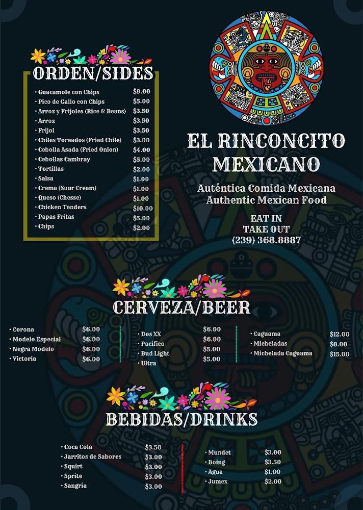 The menu at Taqueria El Rinconcito Mxcn showcases a vibrant selection of traditional Mexican dishes. Enjoy an array of tacos, including al pastor, carnitas, and the unique tripe option. Each dish highlights the richness of flavorful ingredients, guaranteed to satisfy cravings.